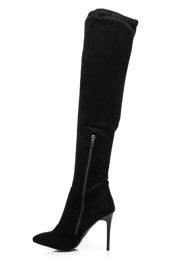 Vysoké čižmy sú aj túto sezónu módnym hitom. Čižmy nad kolená sú pomerne výrazným doplnkom outfitu, preto stačí zvoliť už len jednoduché oblečenie, či doplnky. Dámske čižmy v čiernom farebnom prevedení ľahko skombinujete s džínami, legínami, či sukňou. Dámske čižmy sú ideálnou voľbou pre jarnú, či jesennú sezónu. Opticky predĺžia a zvýraznia Vaše nohy na počkanie. Pre pohodlnejšie obúvanie majú z vnútornej strany zips.